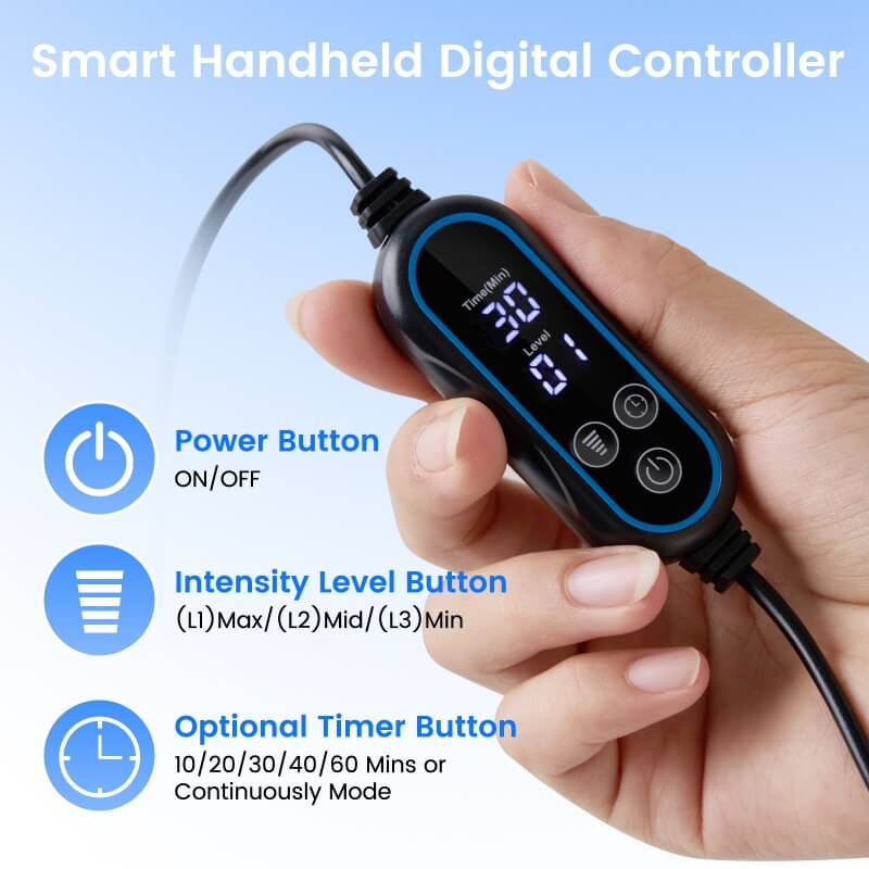 Your Control, Your Recovery: Take control of your healing journey with Galinand intuitive digital controller. Select from 3 intensity levels and 5 timer options, including continuous mode, to customize your therapy.