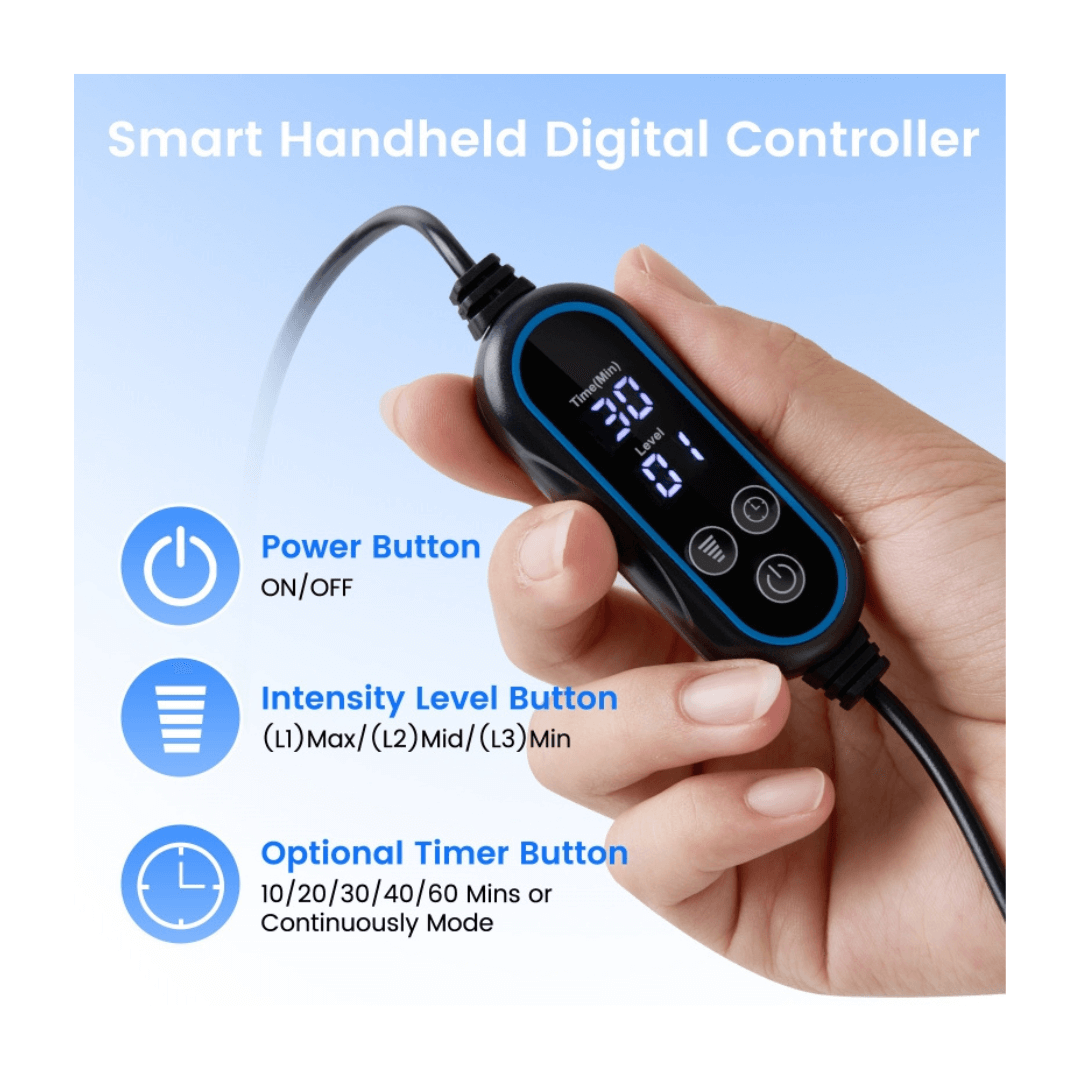 Take control of your recovery with our intuitive smart control. Simply press a button to power on and off, then adjust the intensity to your preferred level. With 3 intensity settings and 6 customizable time options, you can tailor your therapy session to your specific needs.